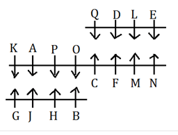 B sits 2nd to the right of the person who faces A. Two persons sit between A and C who faces the person who sits immediate right of D. E faces the person who sits 2nd to the right of F who sits next to C. A doesn’t face E. G and H are immediate neighbors of J. G faces K who sits immediate right of A. L faces M who sits next to N. No one sits between O and P who doesn’t sit next to C. Q doesn’t face to North.