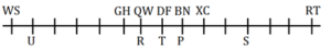 There are as many persons sit to the left of P as right of the person who like QW. The person, who likes QW, sits 2nd to the left of the person who likes BN. Persons who like DF and GH are immediate neighbours of R. Three persons sit between S and T, who sits immediate left of P. Persons who like WS and RT sit at extreme end. Four persons sit between R and S who sits 3rd to the left of the person who likes RT. Seven persons sit between the person who likes XC and U, who sits immediate right of the person who likes WS. T doesn’t like GH. Person who likes XC sits exactly at middle between S and T.