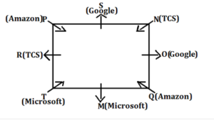 Eight persons M, N, O, P, Q, R, S and T are sitting around a square table. Four of them are sitting at the corners and faces towards the center and the rest are sitting on the sides of the table and faces away from the center. They worked in different companies i.e. Microsoft, Amazon, TCS and Google. Only two persons works in the same company. All the data are not necessarily in the same order.