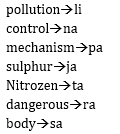 2. In a certain code ‘pollution Control mechanism sulphur’ is written as ‘na li ja pa’, ‘sulphur Nitrozen pollution dangerous’ in written as ‘ta ja li ra’ and ‘Control body pollution dangerous’ is written as ‘sa li na ra’.