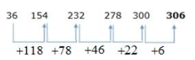 => 24, 24-2, 22-4, 18-8, 10-16 = -6